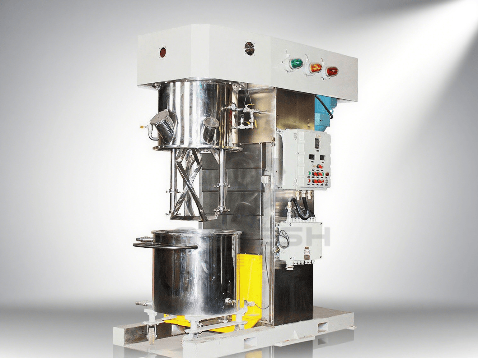 雙行星動(dòng)力攪拌機(jī)雙行星動(dòng)力混合機(jī)是一種新型且對(duì)多種混合液體、粉體進(jìn)行攪拌、溶解、分散、均質(zhì)效率好的攪拌設(shè)備。該設(shè)備配有高速、低速、活動(dòng)刮板部件,低速攪拌部件采用行星齒輪傳動(dòng),攪 -